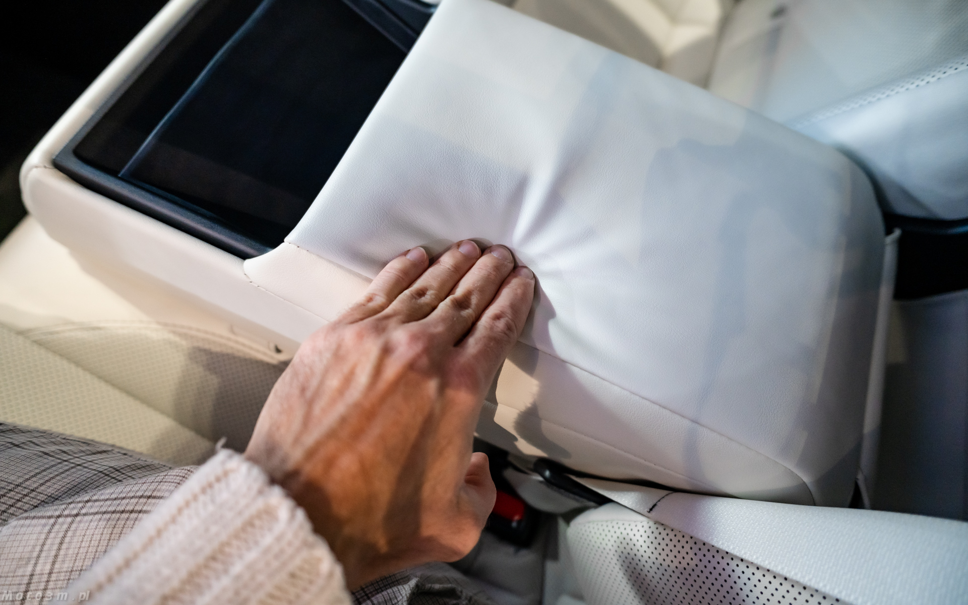 Nie zmieni się natomiast wielkość kabiny, a ta jest imponująca. Nie bez powodu producent zwraca uwagę na wielkość tylnych drzwi. Są one większe niż te przednie – i przekłada się to na wręcz prezydencki komfort jazdy na tylnej kanapie. Jeśli pasażerowie z przodu nie odsuwają zanadto swoich foteli, mówimy tutaj o klasie modeli z segmentu F i to nawet tych w wersji „long”. Warto też oprzeć się o tylny podłokietnik – rzadko kiedy bywa on tak miękki! Za sprawą baterii umieszczonych w podłodze, miejsca dla pasażerów są umieszczone nieco wyżej niż standardowo ma to miejsce w limuzynach. Przekłada się to na wygodniejsze wsiadanie i wysiadanie.